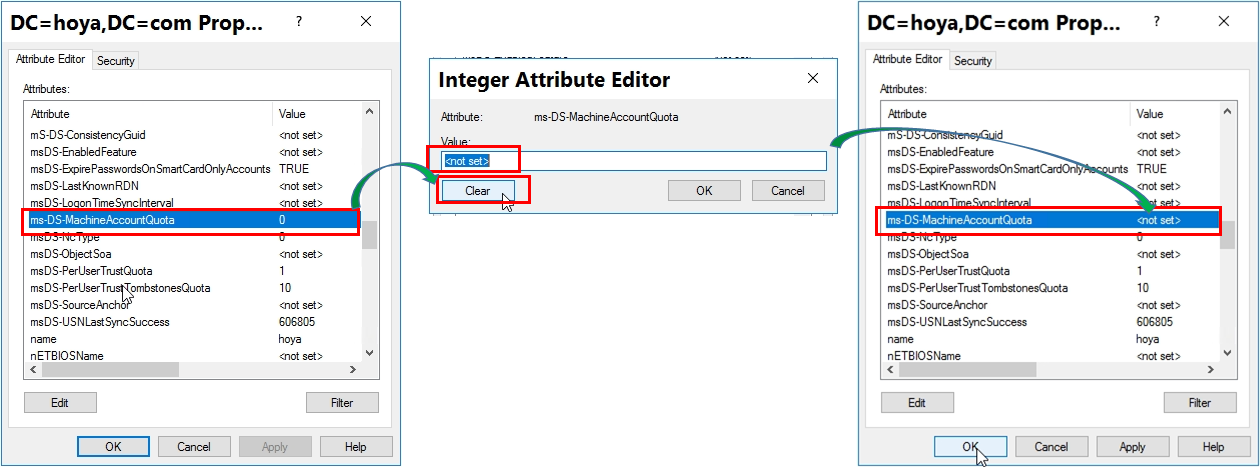 - 0 : 도메인의 사용자는 컴퓨터 계정 추가를 허용하지 않음(Default 값)