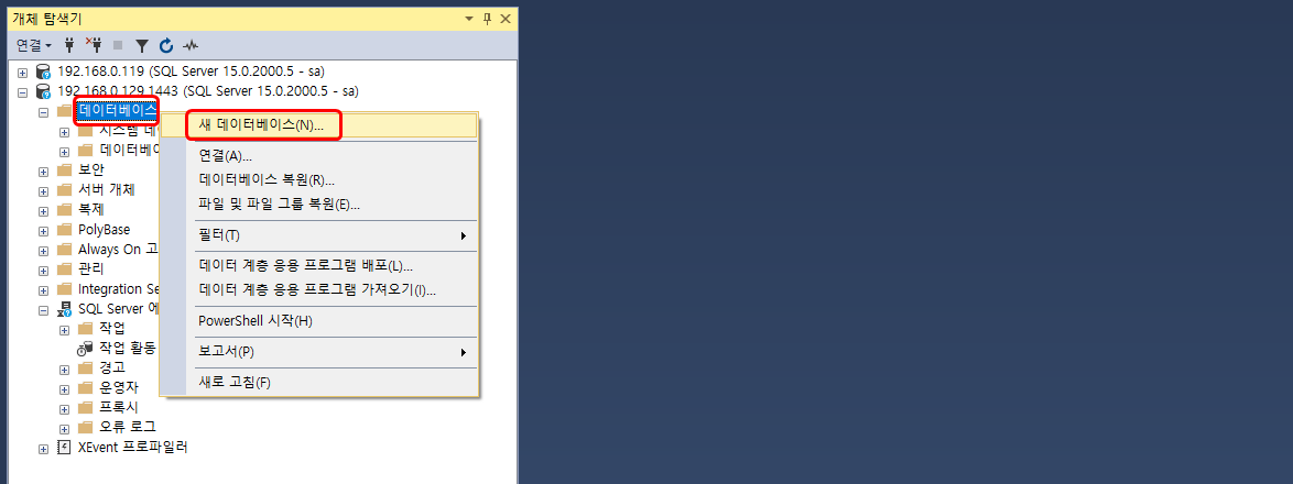 1.1 데이터베이스 우클릭 > 새 데이터베이스