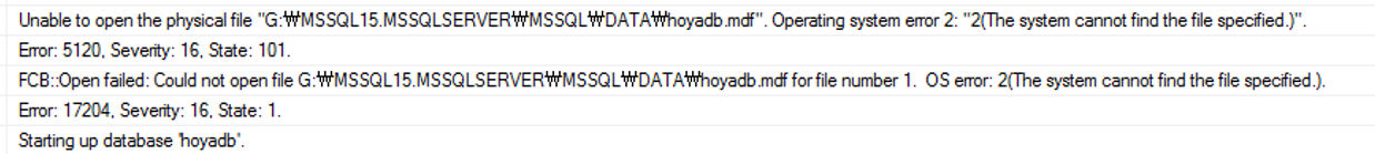1> RESTORE LOG hoyadb FROM DISK = 'G:\MSSQL15.MSSQLSERVER\MSSQL\Backup\taillog.bck' WITH RECOVERY |