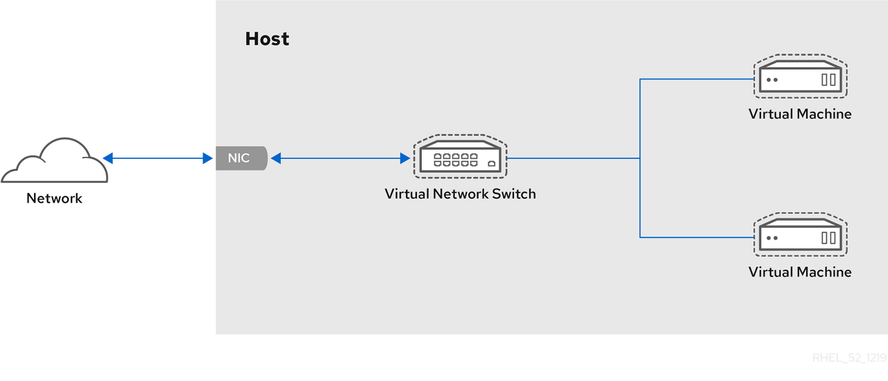 libvirtd 데몬 (libvirtd)을 처음 설치하고 시작하면 가상 네트워크 스위치를 나타내는 기본 네트워크 인터페이스는 virbr0입니다. virbr0는 가상 네트워크 스위치의 개념을 사용합니다. virbr0 네트워크 인터페이스는 Guest(가상머신)가 네트웍 서비스에 접근하는 것을 허락하기위해서 Network address translation (NAT) 를 위해 사용됩니다. 호스트가 하이퍼바이저로 운영되는 시스템이 아니라면 굳이 필요하지 않은 인터페이스 입니다.