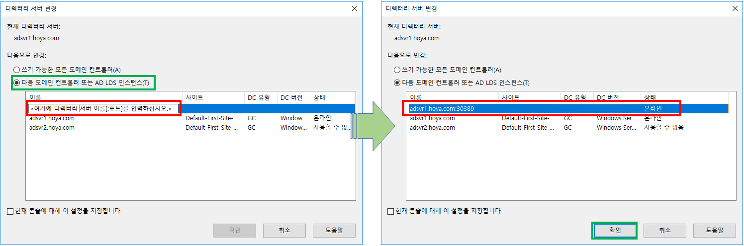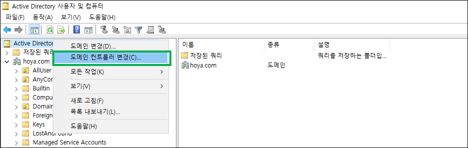 - Active Directory 사용자 및 컴퓨터 > 도메인 컨트롤러 변경