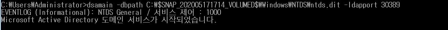 | CMD> dsamain -dbpath <스냅샷 ntds.dit 경로> -ldapport <portNumber> |