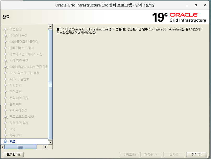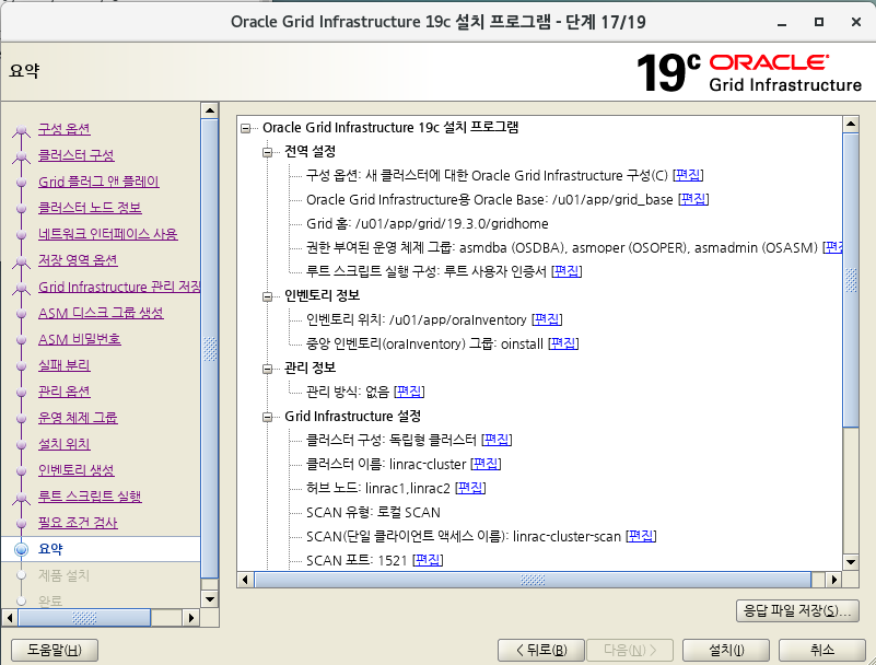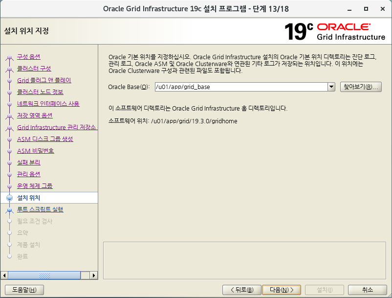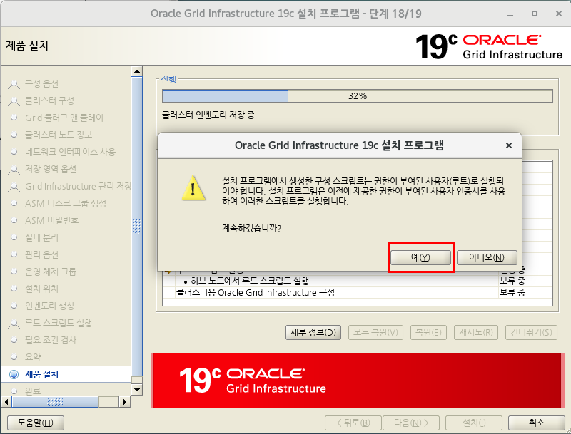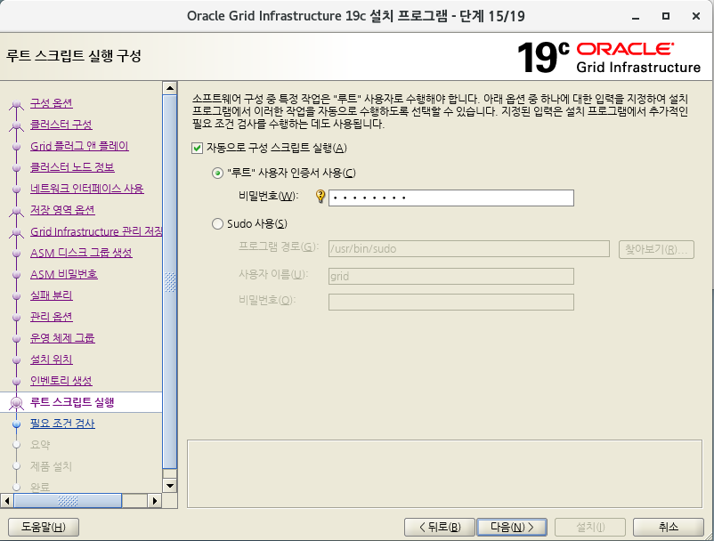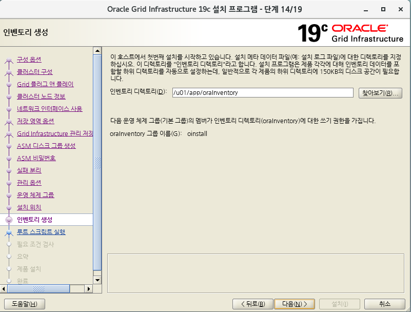 - $ORACLE_HOME/bin/root.sh, /u01/app/oraInventory/orainstRoot.sh 두개의 파일을 루트 권한으로 실행