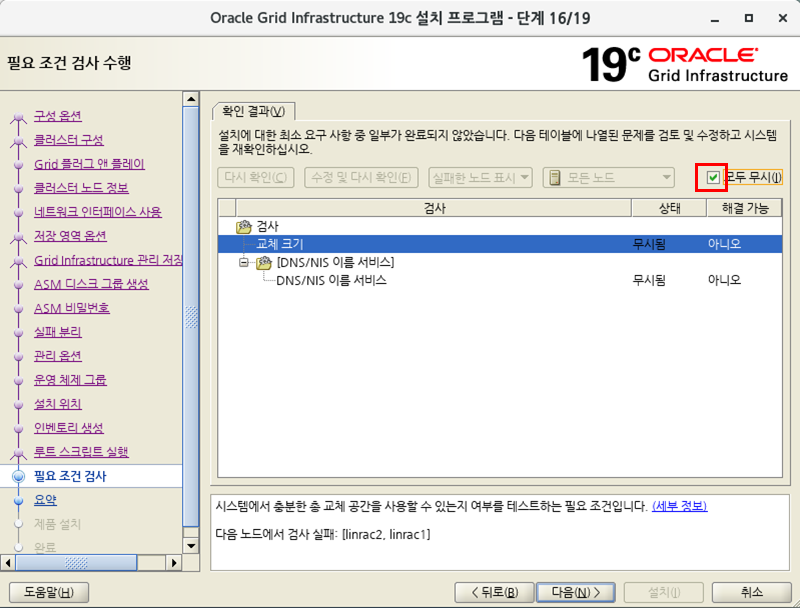 19.2 조치가 필요하지 않는 경우 모두 무시 선택후 진행