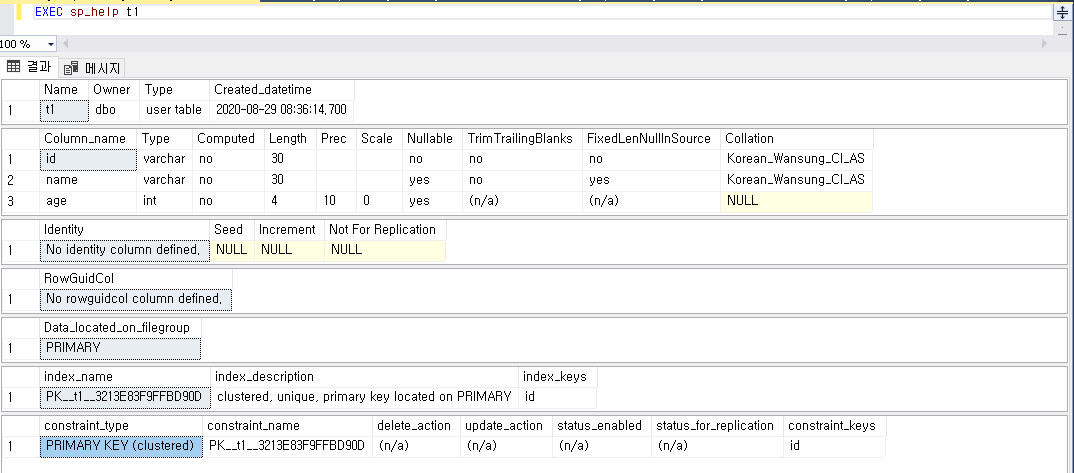| EXEC sp_help 테이블이름 |