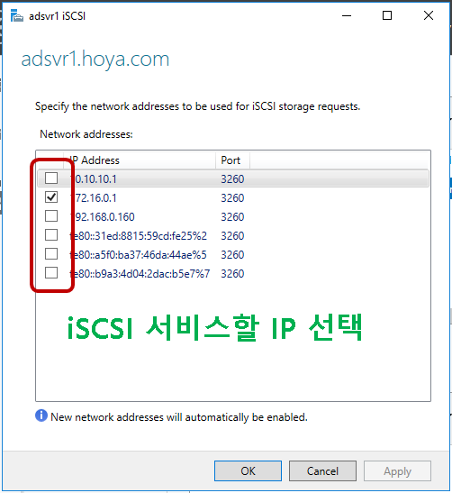 3. iSCSI를 서비스할 IP 선택