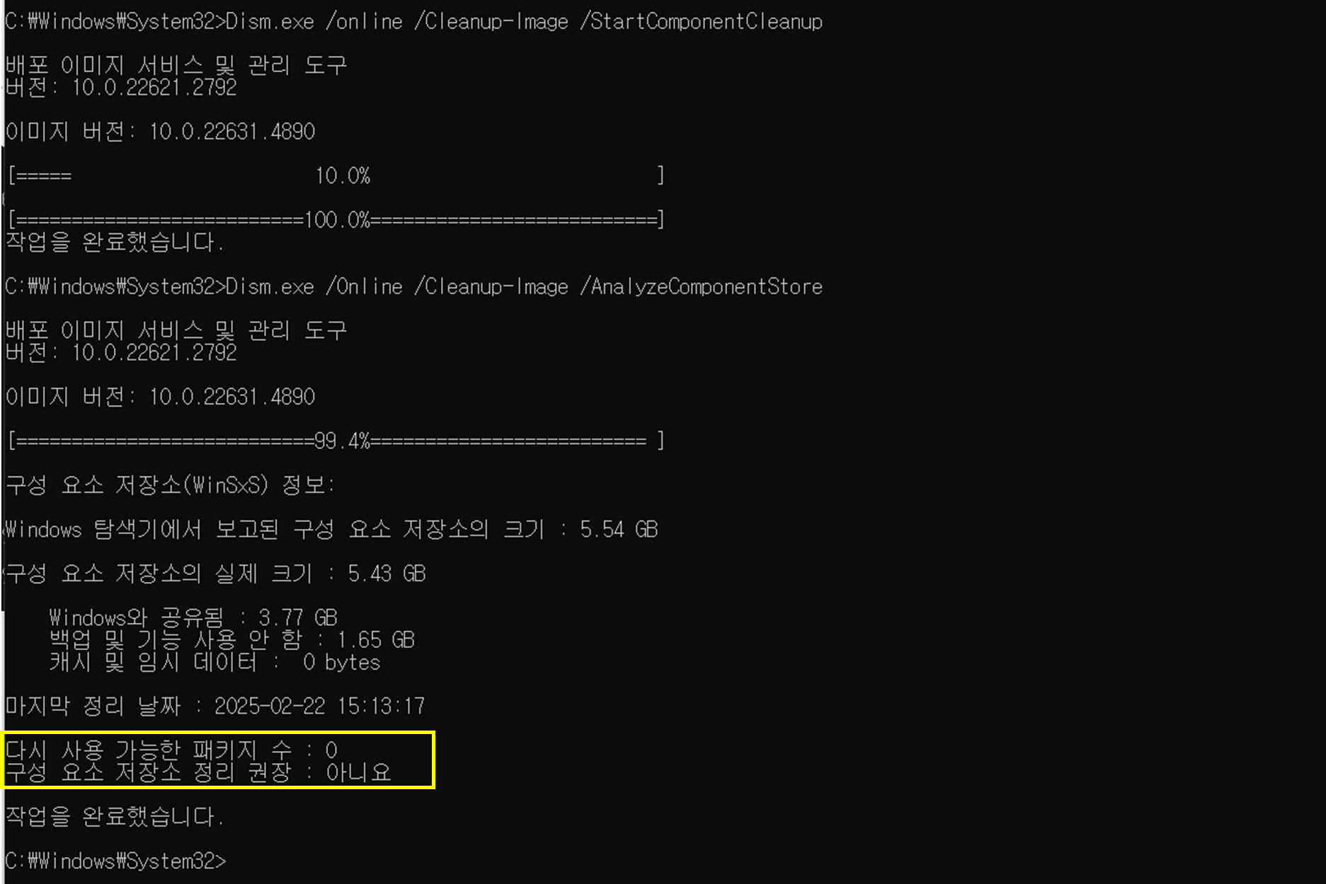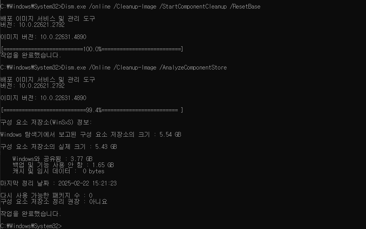 2. WinSxS 폴더 정리