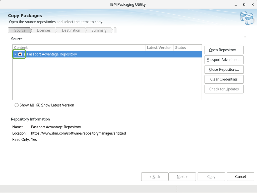 Step 3) 소스 위치(Passport Advanage Repository) 선택
