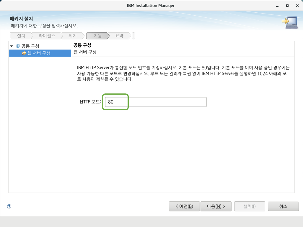 - IBM HTTP Server 는 Console 모드(텍스트 모드)에서는 설치 지원을 하지 않는다.