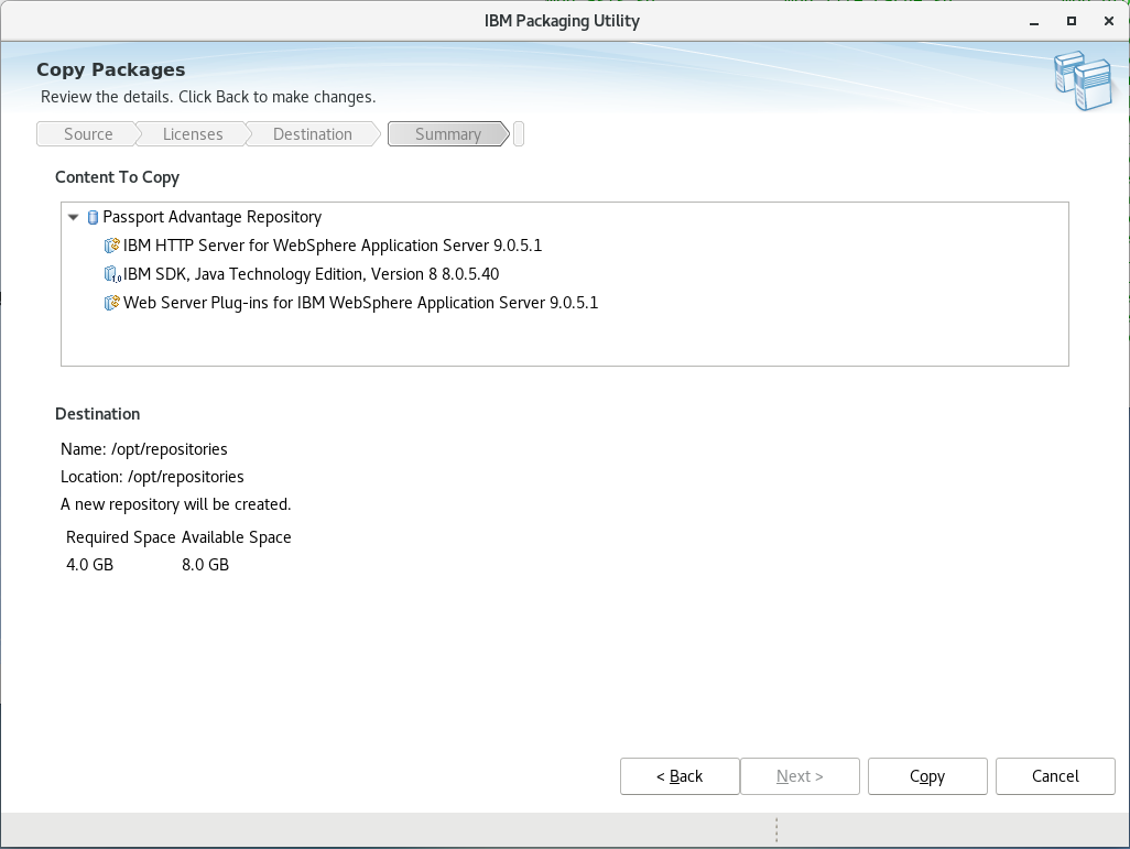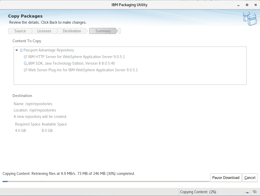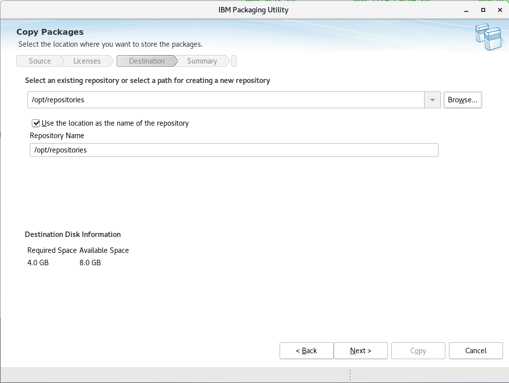 Step 5) 제품 패키지가 Copy(다운로드) 될 위치 선택및 저장소 이름 설정