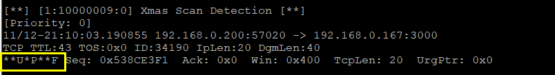 alert tcp any any -> any any (msg:"Xmas Scan Detection";flags:FPU;sid:10000001;)