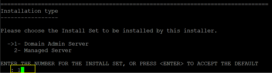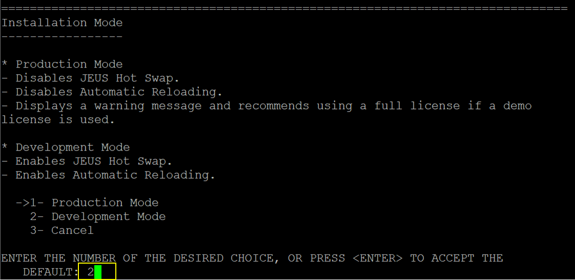 2.4 설치 모드 선택(운영모드일 경우 1, 개발모드일 경우 2선택)