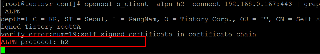 shell> openssl s_client -alpn h2 -connect 192.168.0.167:443 | grep ALPN