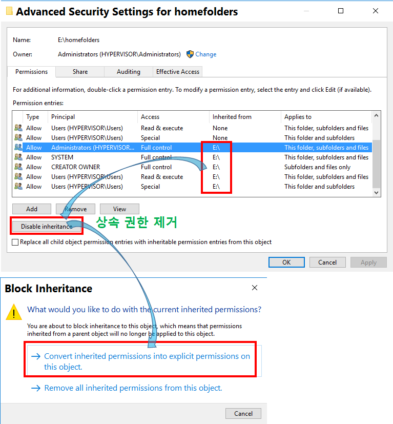 예) D:\homefolders 공유