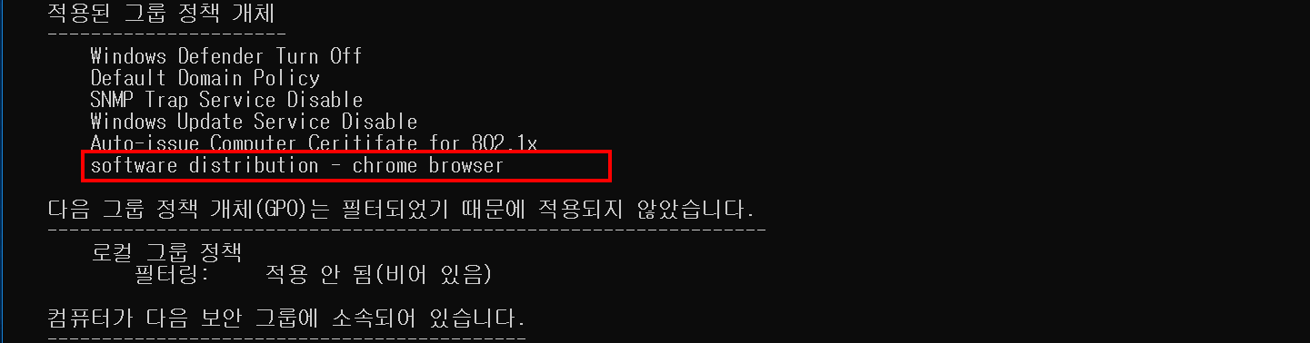 - WMI Filter가 적용된 정책 이름 : software distribution - chrome browser